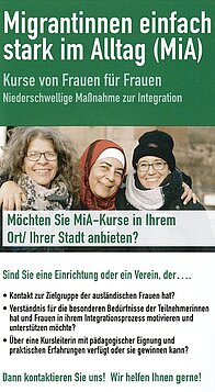 The women are picked up where they stand and encouraged on the basis of trust and openness to reflect on their life situation, to develop realistic perspectives for the future and to take the first steps out of a situation that is often experienced as unsatisfactory. Integration course complementary measures: